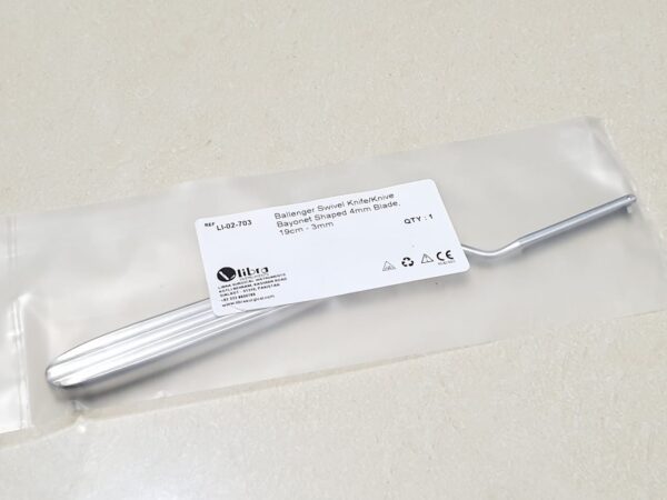 LIBRA Brand Ballenger Swivel Knife/Knive Bayonet Shaped 4mm Blade, 19cm is Total Overall Length Size With Light-Weight Hollow Handle, Designed for cutting and removing nasal cartilage, Swiveling blade cuts in the direction that pressure is placed. LIBRA Brand Ballenger Swivel Knife assists surgeons to perform tissue excisions in nasal surgeries, as it can cut the tissues based on the direction of the operator’s hands. Handcrafted With German Stainless Steel. Satin Finish. Original Pics are Attached