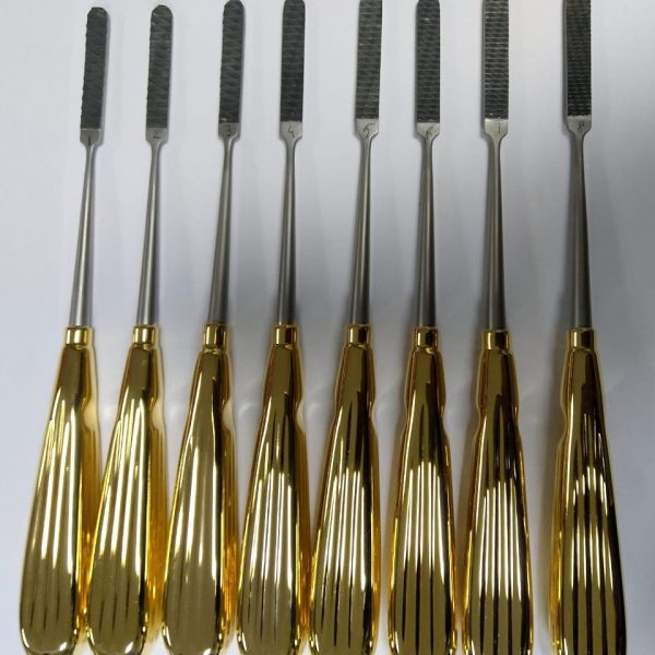 We offer other files with diverse shapes and sizes for your convenience in bone surgeries. This range allows you to customize your approach for every patient. Handcrafted With German Stainless Steel. Gold Plated