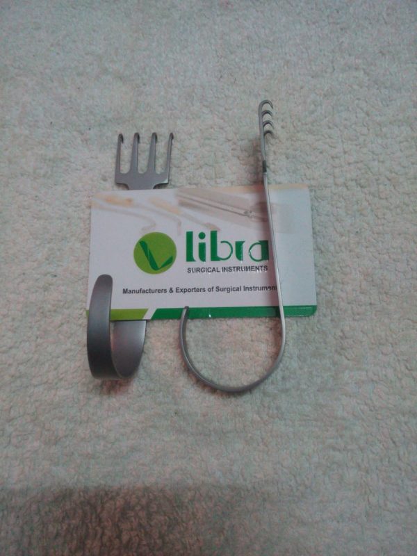 LIBRA Brand Freeman Rake Retractor Features With Four Sharp prongs With Front and Reverse Grip and Total overall length Size is 10.0cm (100.0mm). Used for Plastic Surgery Procedures including face lifts and breast reconstruction. Rake style prongs provide even skin retraction. The small version includes thumb hook. Handcrafted With German Stainless Steel. Satin or Sand Finish. Original Pics are Attached