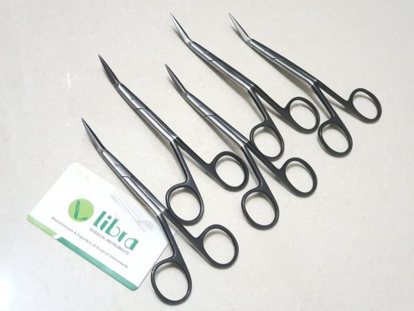 LIBRA Brand Giunta Rhinoplasty SuperCut Scissors 13.5cm, Very useful in Rhinoplasty and Facelift surgeries. Angled blades allow for quick navigation of the nasal contour and accurate dissection. Giunta Nasal Scissors is a multipurpose instrument that is used for sharp dissection of soft tissues. Satin, Black Ceramic Finish. Original Pics are Attached