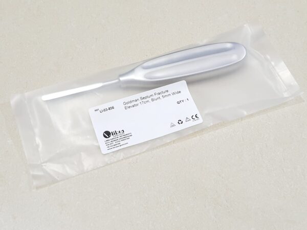 LIBRA Brand Goldman Septum Fracture Elevator Features slightly-tapered blade With Hollow Handle, 5.0 mm wide, and Total overall length Size is 17cm, Useful in nasal septum surgeries. The broad blade can be used to lift a larger area of mucoperichondrial flap than other septum elevators. Handcrafted With Grade German Stainless Steel. Satin Finish. Original Pic is Attached