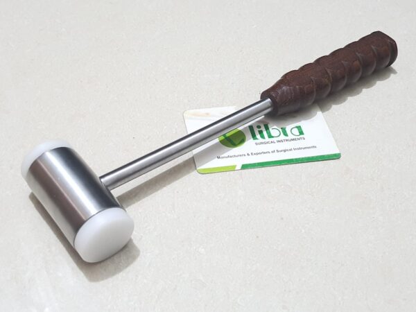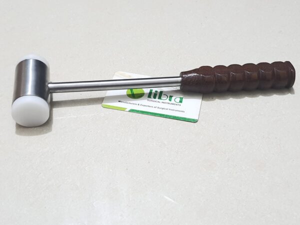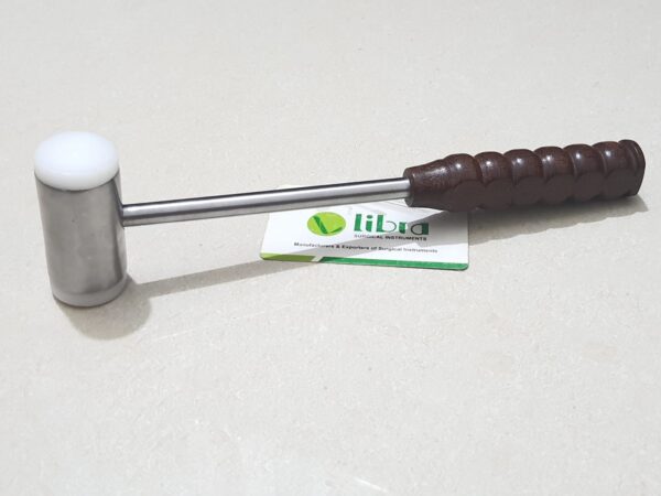 LIBRA Brand Mallet Solid Steel Head With Plastic Facing Caps, 30 mm Diameter, 215 Grams, 24cm Total Overall Length Size is useful in Rhinoplasty procedures. Handcrafted With German Stainless Steel Head and Shaft With Fiber Grip Solid Handle. Satin Finish
