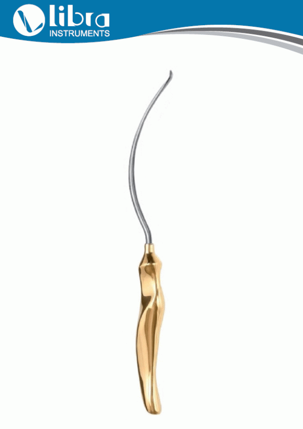 LIBRA Brand Periosteal Spreader “S” Shape 10mm Blade Width, 9¾”/24cm is Total Overall Length Size, to assist innovative endoscopic aesthetic surgical treatments, the Periosteal Spreader “S” Shape Endo-facelift instrument have been designed. Each device is crafted for a particular surgical procedure and tailored to meet facial characteristics. Also used to elevate periosteum in endoscopic brow lift procedures. The elevation of this periosteum occurs after the arcus marginal is release. This is also referred to as the Infra-Brow Periosteal spreader which references its use to elevate periosteum. Handcrafted With German Stainless Steel. Satin Finish With Gold Plated Hollow Handle. Original Pics are attached