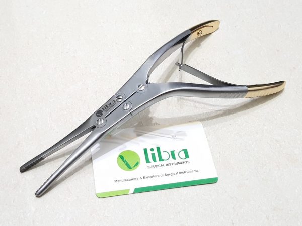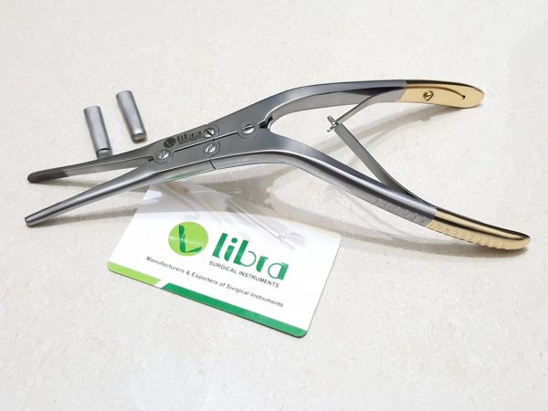 LIBRA Rubin Septum Forceps, Tungsten Carbide enable Surgeons/Doctors to treat nasal diseases. The device, tool, instrument, product helps remove parts of the cartilage in plastic surgery. Doctors use the Rubin Septum Forceps to cut pieces of the septum to repair wall defects or remove tissues that cause infection or bleeding.
