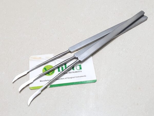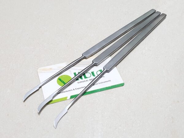 LIBRA Brand Sickle knife, pointed, 19 cm/7½” is Total Overall Length Size With Sharp Sickle Shaped Blade for Higher Surgical Precision And Straight Tapering Shaft for Deep Surgical Access, Solid Flat Handle Ensuring Maximum Control. Sickle Knife is a specialized otology device that surgeons can use for cutting small mucosal flaps within the middle ear or to cut other minute tissues , such as the stap-dial tendon. Handcrafted With German Stainless Steel. Satin Finish