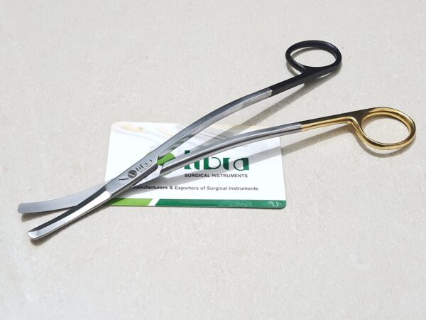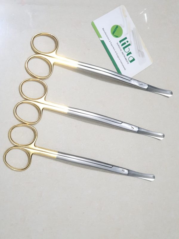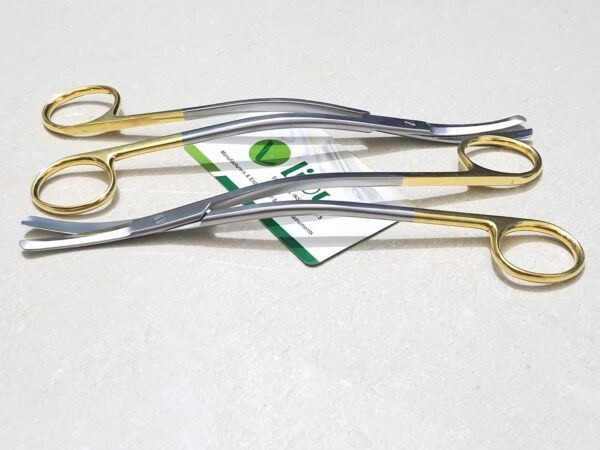 LIBRA Brand Wilkinson Face-Lift Scissors 19cm With Duckbill Tip Curved is a multipurpose instrument commonly used during blunt and sharp dissection of tissues. It is usually used to dissect sheaths during General, Plastic and Gynecological surgeries. Angled shanks, double-beveled blades with duckbill tips and micro serrations on the lower blade to prevent tissue slippage. Handcrafted With German Stainless Steel. Satin, Gold Plated, Black Ceramic Finish. Original Pics are Attached